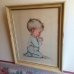 木製のフレームに入った、お祈りをしている子の可愛いプリント。