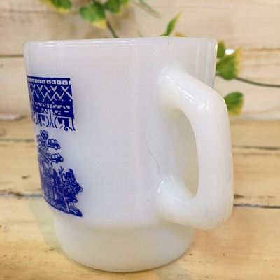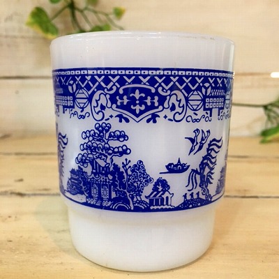伝統的なウィローパターンが用いられたファイヤーキングのプリントマグ。